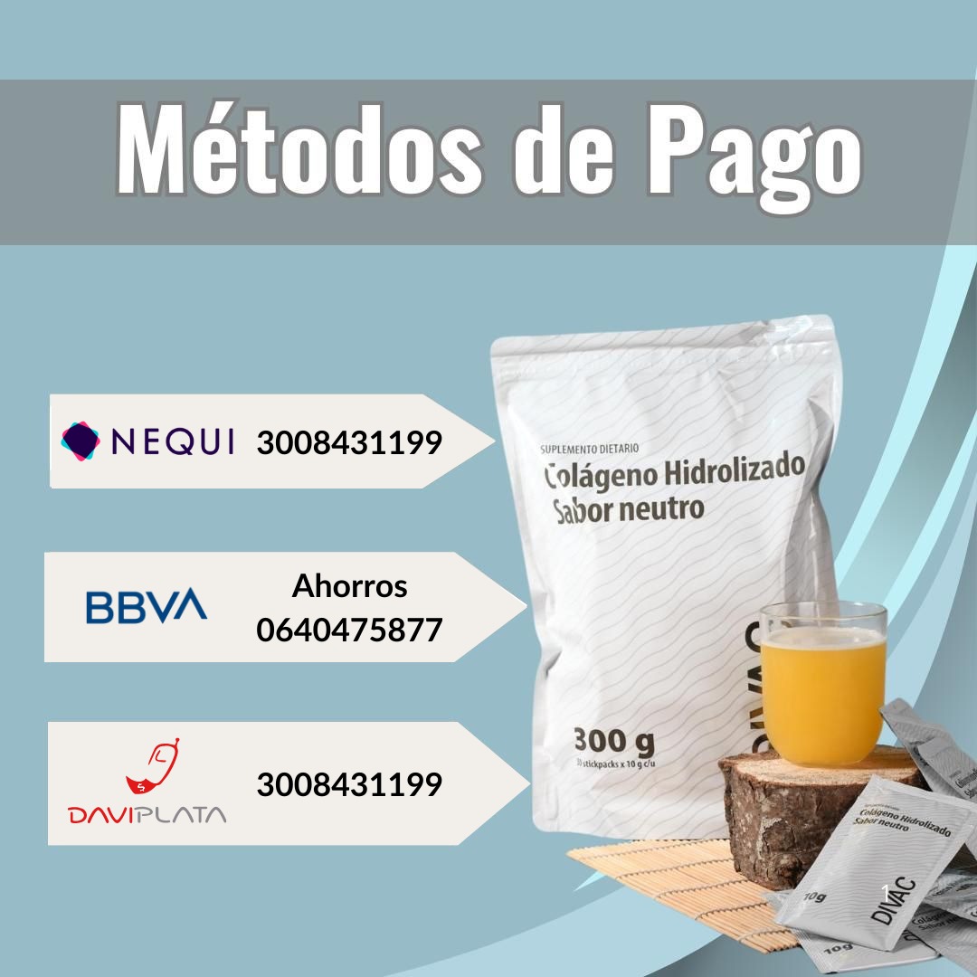 ¿Tienes un cupón? Haz clic aquí para introducir tu código Si tienes un código de cupón, por favor, aplícalo abajo. Cupón: Aplicar cupón Detalles de facturación Nombre *Apellidos *País / Región *Selecciona un país/región…AfganistánAlbaniaAlemaniaAndorraAngolaAnguilaAntártidaAntigua y BarbudaArabia SauditaArgeliaArgentinaArmeniaArubaAustraliaAustriaAzerbaijanBahamasBahrainBangladeshBarbadosBelauBélgicaBelizeBeninBermudaBhutanBielorrusiaBirmaniaBoliviaBonaire, San Eustaquio y SabaBosnia y HerzegovinaBotswanaBrasilBrunéiBulgariaBurkina FasoBurundiCabo VerdeCamboyaCamerúnCanadáChadChileChinaChipreCiudad del VaticanoColombiaComorasCongo (Brazzaville)Congo (Kinshasa)Corea del NorteCorea del SurCosta de MarfilCosta RicaCroaciaCubaCuraçaoDinamarcaDjiboutiDominicaEcuadorEgiptoEl SalvadorEmiratos Árabes UnidosEritreaEslovaquiaEsloveniaEspañaEstados Unidos (EEUU)EstoniaEsuatiniEtiopíaFilipinasFinlandiaFiyiFranciaGabónGambiaGeorgiaGhanaGibraltarGranadaGreciaGroenlandiaGuadalupeGuamGuatemalaGuayana FrancesaGuernseyGuineaGuinea EcuatorialGuinea-BisáuGuyanaHaitíHondurasHong KongHungríaIndiaIndonesiaIrakIránIrlandaIsla BouvetIsla de ManIsla de NavidadIsla NorfolkIsla Santa ElenaIslandiaIslas ÅlandIslas CaimánIslas CocosIslas CookIslas de ultramar menores de Estados Unidos (EEUU)Islas FeroeIslas Georgias y Sandwich del SurIslas Heard y McDonaldIslas MalvinasIslas Marianas del NorteIslas MarshallIslas SalomónIslas Turcas y CaicosIslas Vírgenes (Británicas)Islas Vírgenes (EEUU)IsraelItaliaJamaicaJapónJerseyJordaniaKazajistánKeniaKirguistánKiribatiKuwaitLaosLesotoLetoniaLíbanoLiberiaLibiaLiechtensteinLituaniaLuxemburgoMacaoMacedonia del NorteMadagascarMalasiaMalauiMaldivasMalíMaltaMarruecosMartinicaMauricioMauritaniaMayotteMéxicoMicronesiaMoldaviaMónacoMongoliaMontenegroMontserratMozambiqueNamibiaNauruNepalNicaraguaNígerNigeriaNiueNoruegaNueva CaledoniaNueva ZelandaOmánPaíses BajosPakistánPanamáPapúa Nueva GuineaParaguayPerúPitcairnPolinesia FrancesaPoloniaPortugalPuerto RicoQatarReino Unido (UK)República CentroafricanaRepública ChecaRepública DominicanaReuniónRuandaRumaniaRusiaSahara OccidentalSamoaSamoa AmericanaSan BartoloméSan Cristóbal y NievesSan MarinoSan Martín (Países Bajos)San Martín (parte de Francia)San Pedro y MiquelónSan Vicente y las GranadinasSanta LucíaSanto Tomé y PríncipeSenegalSerbiaSeychellesSierra LeonaSingapurSiriaSomaliaSri LankaSudáfricaSudánSudán del SurSueciaSuizaSurinamSvalbard y Jan MayenTailandiaTaiwánTanzaniaTayikistánTerritorio Británico del Océano ÍndicoTerritorios australes francesesTerritorios PalestinosTimor OrientalTogoTokelauTongaTrinidad y TobagoTúnezTurkmenistánTurquíaTuvaluUcraniaUgandaUruguayUzbekistánVanuatuVenezuelaVietnamWallis y FutunaYemenZambiaZimbabue *Actualizar país/regiónDirección de la calle *Apartamento, habitación, escalera, etc. *Ciudad *Departamento * Elige una opción…AmazonasAntioquiaAraucaAtlánticoBolívarBoyacáCaldasCaquetáCasanareCaucaCesarChocóCórdobaCundinamarcaDistrito CapitalGuainíaGuaviareHuilaLa GuajiraMagdalenaMetaNariñoNorte de SantanderPutumayoQuindíoRisaraldaSantanderSan Andrés y ProvidenciaSucreTolimaValle del CaucaVaupésVichadaTeléfono *Dirección de correo electrónico * Información adicional Notas del pedido (opcional) Tu pedido Producto Subtotal Colágeno Hidrolizado DIVAC × 1 $ 95.000 Subtotal $ 95.000 Total $ 95.000 Pay via Wompi gateway. Transferencia Bancaria Elige la opción de tu preferencia para realizar el pago Debido a que tu navegador no es compatible con JavaScript o lo tiene desactivado, por favor, asegúrate de hacer clic en el botón Actualizar totales antes de realizar tu pedido. De no hacerlo, se te podría cobrar más de la cantidad indicada arriba. Actualizar totales Tus datos personales se utilizarán para procesar tu pedido, mejorar tu experiencia en esta web y otros propósitos descritos en nuestra política de privacidad. Realizar el pedido