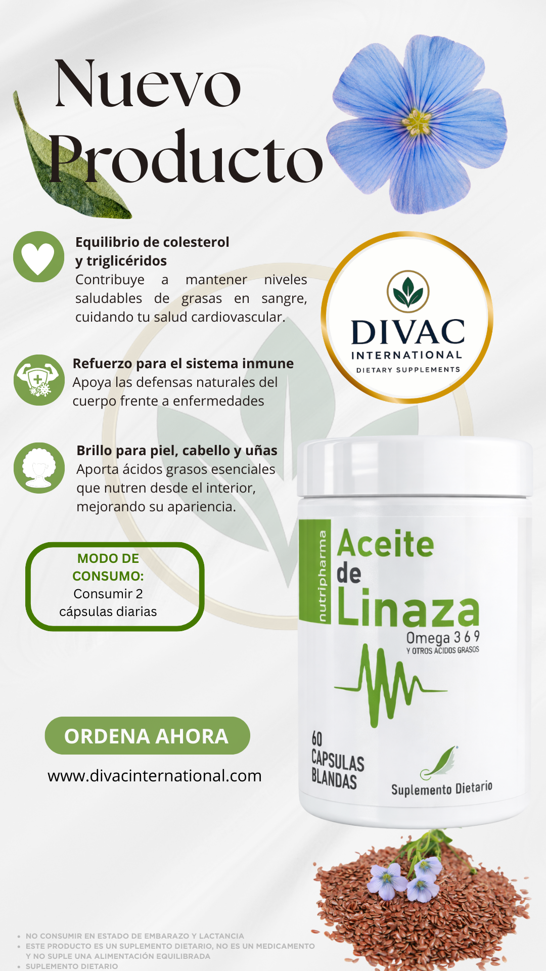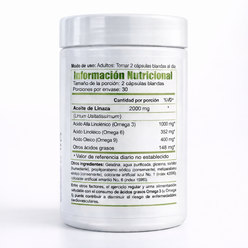 Descubre los beneficios del Aceite de Linaza, una fuente natural de Omega 3, 6 y 9 que ayuda a complementar tu nutrición diaria y a cuidar tu bienestar desde el interior. Su fórmula aporta ácidos grasos esenciales que contribuyen a mantener el equilibrio de grasas en el organismo, apoyando la salud cardiovascular, el sistema inmune y la vitalidad de la piel, el cabello y las uñas.