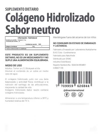 Suplemento dietario en grado premium, ideal para complementar la ingesta diaria de proteína hidrolizada. Cada doypack incluye 30 sobres de 10 g, prácticos para uso diario. Fórmula neutra, fácil de mezclar y diseñada bajo estándares de calidad. Registro sanitario INVIMA vigente. Este producto es un suplemento dietario, no es un medicamento.